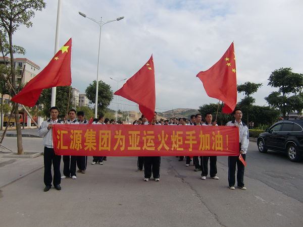 第32棒火炬手、匯源集團董事長賴運宏在建設(shè)大道完成了火炬?zhèn)鬟f的光榮使命。為了支持此次亞運會,匯源集團特組織了一支上百人的員工隊伍,手握紅旗,前往現(xiàn)場為亞運加油、為中國加油、為火炬手加油。