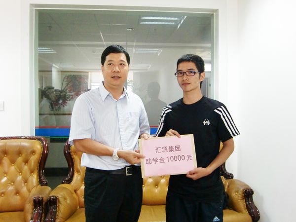 2010年8月31日,匯源集團董事長賴運宏向和平縣東水鎮(zhèn)宋洞村葉志華送上10000元助學(xué)金。葉志華來自農(nóng)村貧困家庭,人窮志不窮的他,于今年考上了中山大學(xué)。但是,讀大學(xué)的費用,讓這個本已陷入困境的家背負起了更大的壓力。董事長賴運宏獲悉消息后,第一時間伸出了援助之手,及時為葉志華送上10000元助學(xué)金,并表示將為葉志華承擔(dān)大學(xué)四年的學(xué)費。賴運宏對葉志華說:“在大學(xué)要樹立理想目標,加強鍛煉,學(xué)有所成為和平山區(qū)爭光,為河源爭光。同時,要常懷感恩之心,要以自己的實際行動感謝社會上關(guān)心幫助過自己的人,要成為一個對社會有用的人才,以后力所能及地幫助社會上需要幫助的人!弊詈螅麻L賴運宏也希望廣大市民可以一起幫助身邊需要幫助的人,為打造和諧河源奉獻自己的一份力。