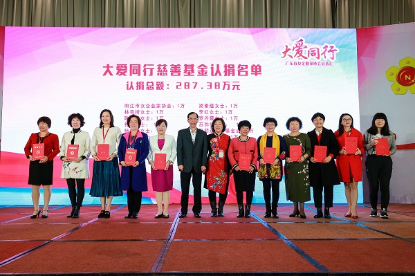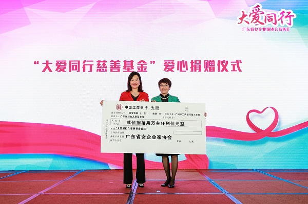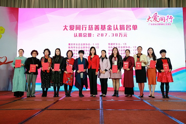 活動中,翟美卿會長代表廣東省女企業(yè)家協(xié)會,將2017年度籌集的287.38萬元善款注入“大愛同行慈善基金”,馮玲書記代表省婦女兒童基金會接收善款,將全部用于幫扶省內(nèi)婦女兒童。